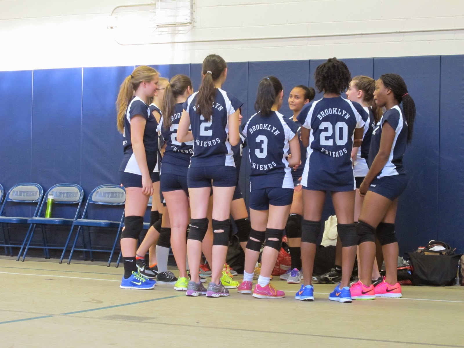 The Panthers were tense in the first set, somewhat thrown off their game playing in a new venue with a lower ceiling than they were used to. The team regrouped between the first two sets and came out in set two serving and passing with much more confidence. This positive momentum carried into the third set and secured BFS the win!! Anna F. served nine consecutive points in the second set and Nia L. served twelve winners between the second and third set. Blue Pride!